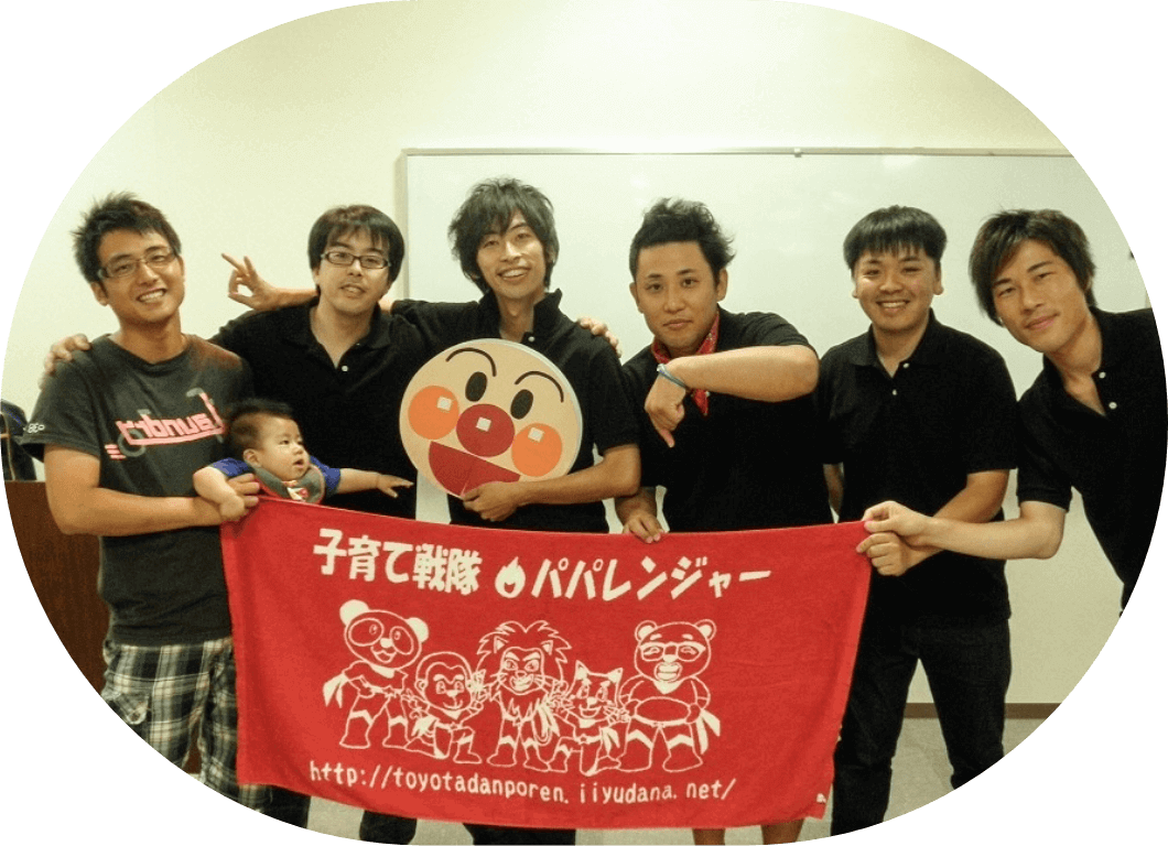 私たちは、0〜6歳までの子を持つパパが繋がる親子支援を行っています。そして、講座に参加してくれていたパパ達が自主的に「子育て男塾」や「おいでんレンジャー」の団体を作り、卒業生達が活動を続けています。参加者のパパ達が、豊田市男性保育師連盟のメンバーに入ることもあり、次世代のパパ達を支援する仕組みになってきています。